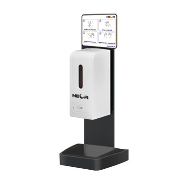 Дизайн Ця модель сенсорного дезінфектора ідеальне рішення для громадських закладів з обмеженим вільним простором. Він просто кріпиться до стінки або ставиться на будь-яку горизонтальну поверхню. Має спеціальний металевий піддон, щоб запобігти попаданню антисептика на підлогу. Живиться від батарейок, то немає необхідності розміщувати його поруч з розеткою. На верхньому табло можна розмістити додаткову рекламну інформацію. Функціональність Простий та безпечний для використання настінний дезінфектор. Виключає ризик інфекційної перехресної контамінації завдяки відсутності контакту рук із дозатором. Об'єм резервуару заливної системи для антисептичної рідини становить 1 літр. Об'єм порції 1,2 мл. Є можливість змінити його у більшу чи меншу сторону. Автоматичне розпилення спрацьовує на відстані до 12 см. При спрацюванні видається візуальний сигнал. У комплекті ви отримаєте спеціальний ключ для відкриття корпусу. Особливості - заливна система. - Сенсор розпилення спрацьовує на відстані до 12 см. - Живлення від батарейок.
